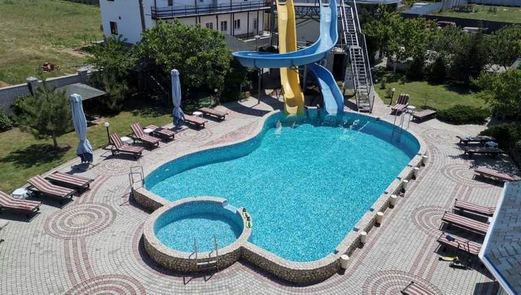- большой плавательный бассейн с водными горками,