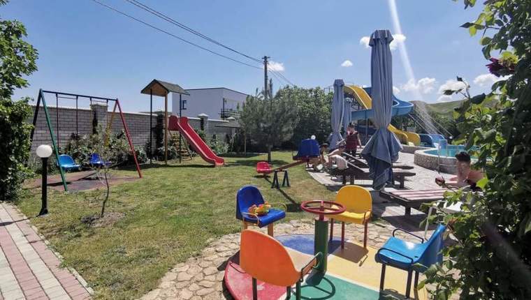 Гостевой дом Новоотрадного «Альбатрос» представляет собой, большую территорию, окруженную зелеными газонами с клумбами цветов, фонтаном, летней площадкой и бассейном с водными горками, двухэтажный корпус для размещения проживающих в просторных и уютных 2-х, 3-х , 4-х, 5-и и 6-тиместных комнатах.