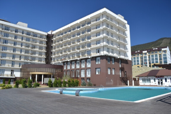 Инфраструктура: пансионат имеет развитую инфраструктуру и разнообразную программу досуга, как для взрослых, так и для детей. Отдыхающие могут плавать в шикарном летнем бассейне, оборудованном шезлонги. Для малышей есть специальное отделение для купания. Неподалеку от бассейна расположена красочная детская площадка, а так же масса игровых аттракционов. В пансионате работает экскурсионный отдел. Отдыхающим предлагается насладиться всеми прелестями современной курортной инфраструктуры, которая располагается в пешей доступности к пансионату. Это и парк «Адмирал Врунгель», и парк Сафари, и увлекательный аквапарк «Бегемот».