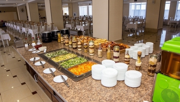Столовая работает с 09:00 – 20:00. В рационе питания постоянно имеются свежие фрукты, напитки, овощи, большой выбор каш, мясных изделий. У бассейна пансионата работает летнее кафе с широким ассортиментом напитков, десертов, освежающих коктейлей (за доп. плату).