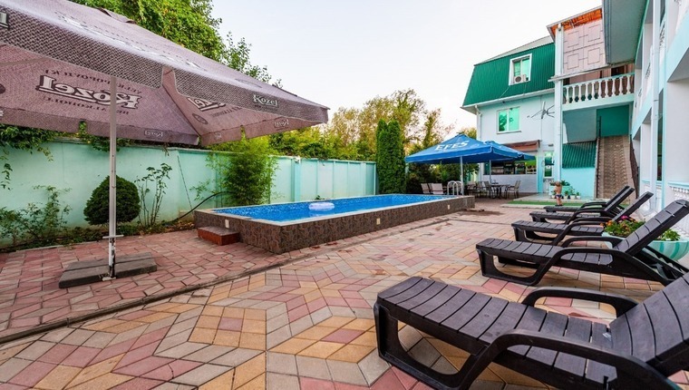 Для комфортного отдыха гостей отеля "Максим" есть открытый плавательный бассейн на территории с уютными зонами отдыха, не подогреваемый. Пользование бассейном входит в стоимость.
