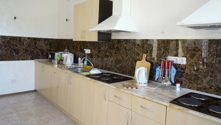Для гостей предусмотрена летняя кухня с беседкой, в которой имеется вся необходимая посуда для приготовления пищи.