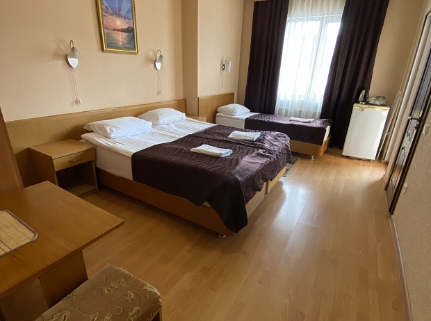В отеле «Патио» к вашим услугам 2-х, 3-х и 4-х местные однокомнатные номера стандарт, комфорт и два двухкомнатных номера класса люкс. Все номера оборудованы телевизором, холодильником, сплит-системой, сейфом, феном. В зонаx общего доступа на ресепшене и во внутреннем дворике имеется бесплатный доступ в интернет (Wi-Fi)