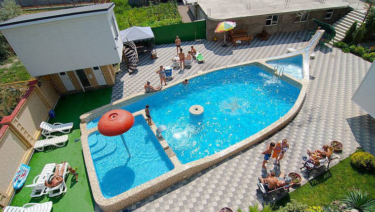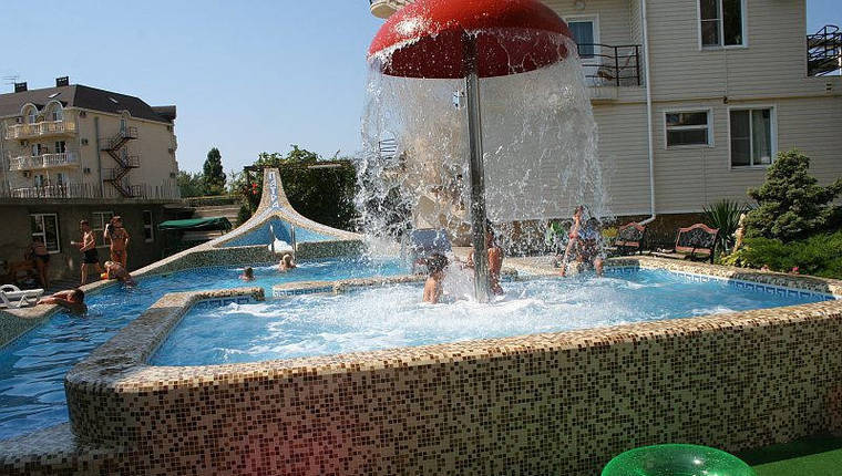 - бассейн с тремя отделениями: «детский» (глубина до 60см), «общий» (глубина до 190см, ширина 7м, длина 18м), «джакузи»;