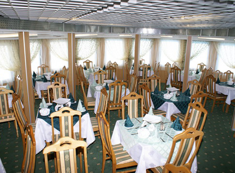 ежедневное трехразовое, исключая день начала и день окончания тура. В день посадки - высадки питание предоставляется в зависимости от времени отправления - прибытия и программы круиза. В рейсах продолжительностью менее 5 дней питание организовано на основании заранее утвержденного меню. В более продолжительных рейсах питание организовано по методу предварительного заказа, выбор блюд со 2-ого дня круиза. В первый день круиза заказ блюд не осуществляется. Меню вывешивается ежедневно в салонах ресторана теплохода. Завтрак, обед, ужин - заказная система питания, В ресторанах фиксированная рассадка. В зависимости от загрузки возможно две смены питания. Спиртные напитки, соки, воды и иная продукция баров и ресторанов, не входящая в стоимость тура,оплачивается дополнительно. В случае, если время проведения экскурсии совпадает со временем приема пищи, туристу выдается «сухой паек».