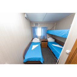 К вашим услугам: 2-х, 3-х и 4-х местные каюты с удобствами, каюты категории «Полулюкс» и «Люкс» с удобствами.