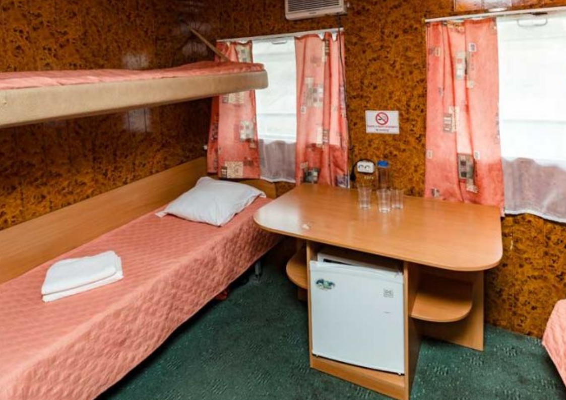 К вашим услугам: 2-х, 3-х и 4-х местные каюты с удобствам,