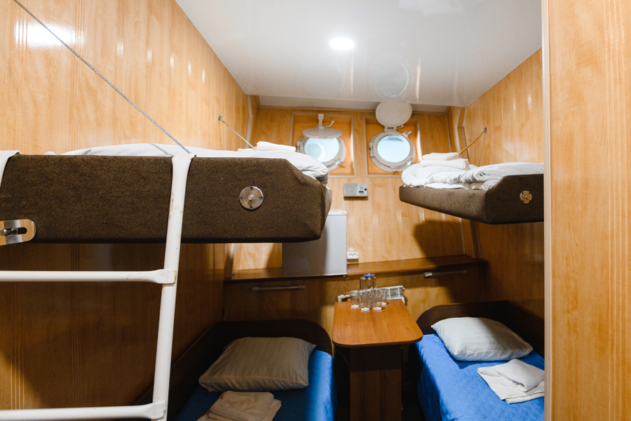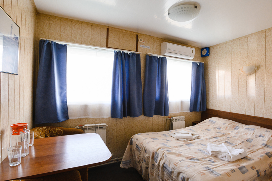 К вашим услугам: 2-х, 3-х и 4-х местные каюты с удобствами, каюты категории «Полулюкс» и «Люкс» с удобствами.