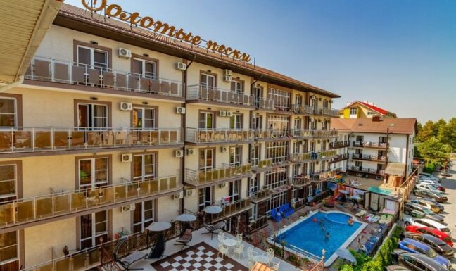 Курортный отель "Золотые пески" построен в 2014 году. Представляет собой одно 5-этажное здание с лифтом, просторными холлами и общественными смотровыми балконами для отдыха.
